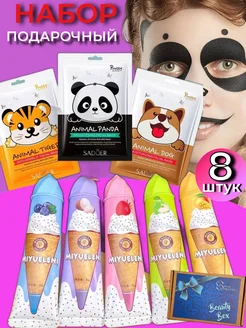 Набор тканевых масок для лица 5шт, крема для рук 5шт