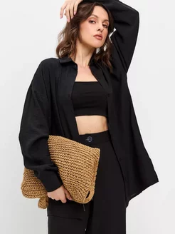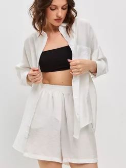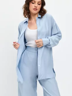 Костюм летний с брюками и рубашкой легкий оверсайз двойка