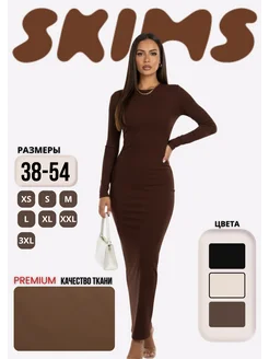 Платье облегающее макси, SKIMS, трикотаж, длинный рукав