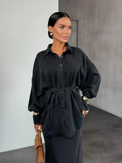 Костюм с юбкой джинсовый черный оверсайз макси демисезон