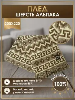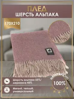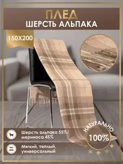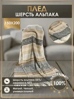 Плед шерстяной 170x210 покрывало на диван перу альпака