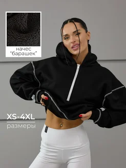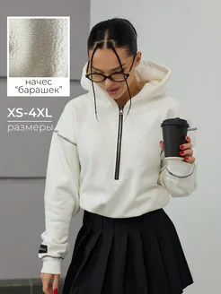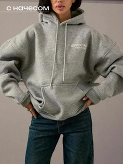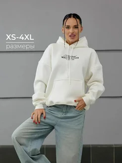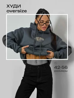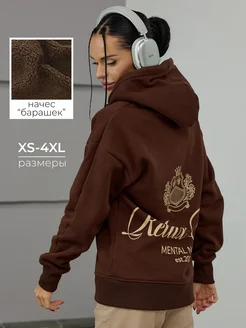 Худи женское с вышивкой утепленное с начесом оверсайз