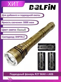 Фонарь подводный R27MAX белый свет 3000лм с аккумуляторами