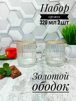 Кружки для чая и кофе 350 мл набор 2 шт. стеклянные