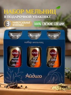 Подарочный набор приправ и специй 3 мельницы "Для мяса"