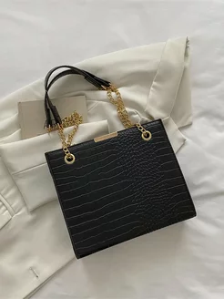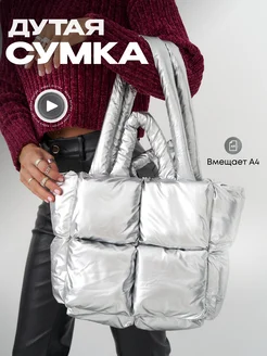 Сумка дутая блестящая стеганая большая А4 объемная мягкая