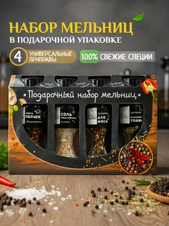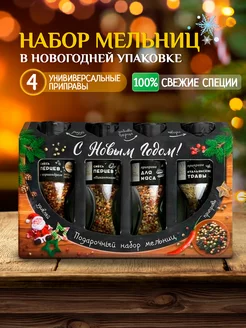 Новогодний подарочный набор специй и приправ, 4 мельницы