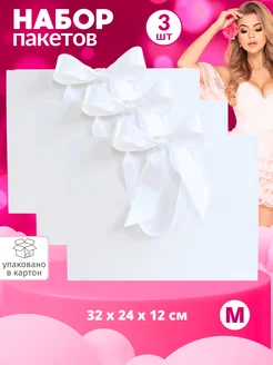 Подарочные пакеты с бантом белые на день рождения набор 3 шт