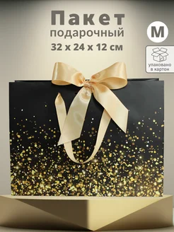 Подарочный пакет новогодний черный с блестками