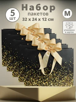 Подарочные пакеты черные с блестками набор 5 шт