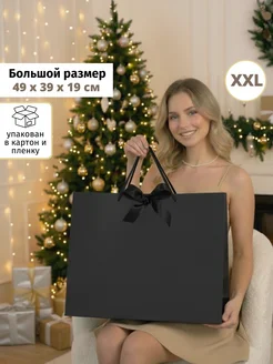 Большой подарочный пакет черный с черным бантом