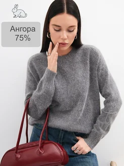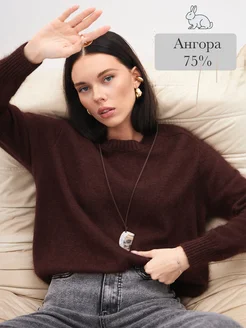 Свитер оверсайз теплый из шерсти ангоры укороченный