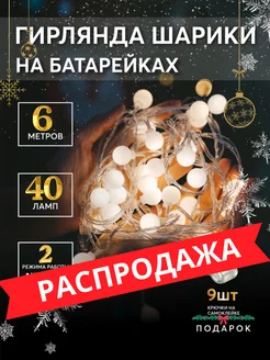 Набор гирлянды шарики на батарейках 6+6 м уличная фотозона