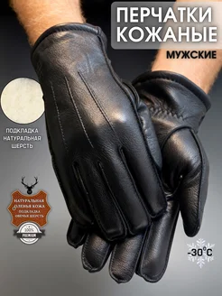 Перчатки теплые зимние кожаные с натуральным овечьим мехом