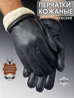 Перчатки теплые меховые зимние из натуральной кожи оленя