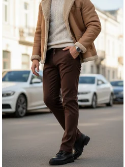 Брюки коричневые классические чинос зауженные