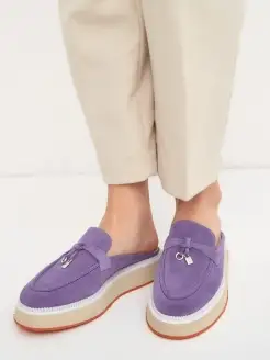 Лодочки туфли голубые из натуральной кожи на удобном каблуке