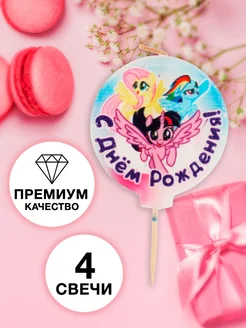 Свечи для торта My Little Pony со стикером на шпажках 4 шт