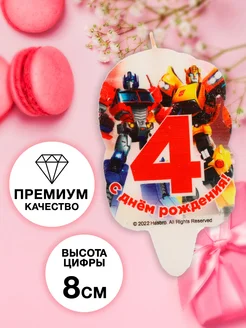 Свечи для торта свеча со стикером цифра 4 Трансформеры
