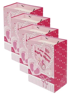 Пакет подарочный глянцевый бумажный большой с рождением 4 шт