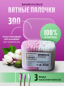 Ватные палочки бамбуковые 3 наконечника 300 шт