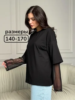 Лонгслив оверсайз с двойным рукавом в сетку для подростков