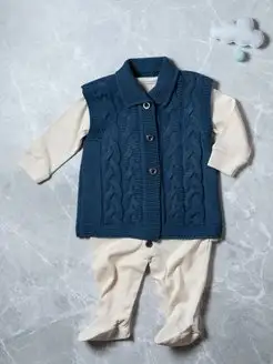 Комбинезон вязаный для новорожденных и малышей с капюшоном