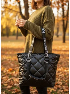 Сумка дутая стеганая на плечо дорожная болоньевая