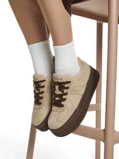 Кеды демисезонные на массивной подошве натуральная замша