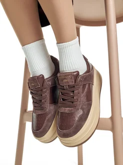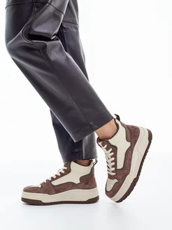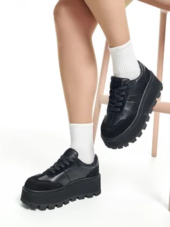 Кожаные кроссовки на высокой платформе полуботинки