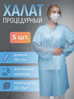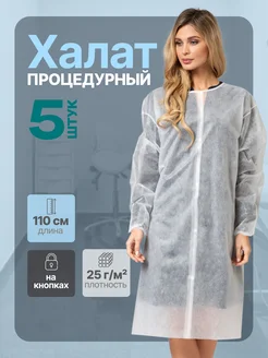 Халат одноразовый 5 штук на кнопках