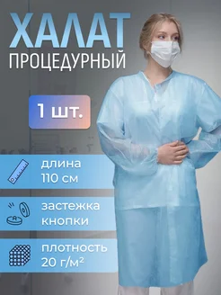 Халат одноразовый голубой 1 штука НА КНОПКЕ