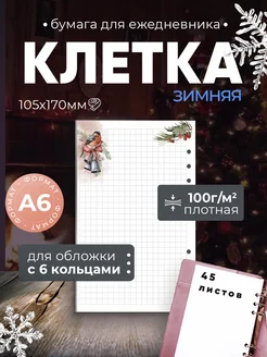 Сменный блок для тетради на кольцах Зимняя клетка А6