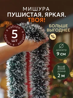 Новогодняя мишура пушистая на проволоке набор 5 шт