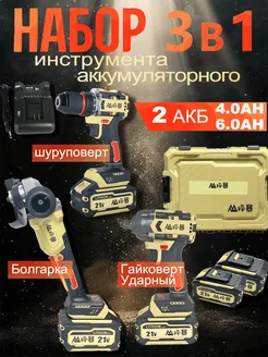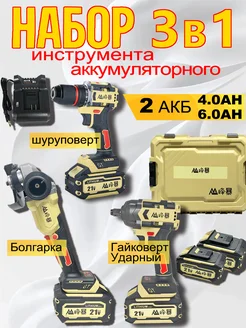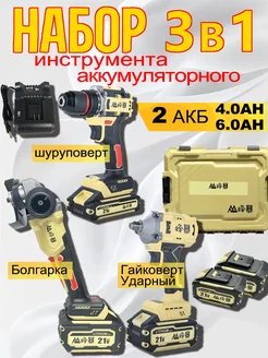 Гайковерт, шуруповерт, ушм Набор аккумуляторного 3в1