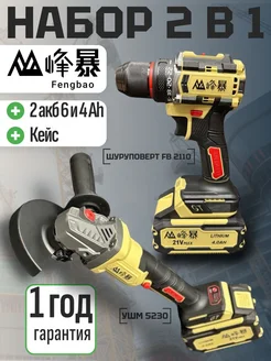 Набор 2 в 1 Feng bao шуруповерт 60nm УШМ 125мм 2 АКБ