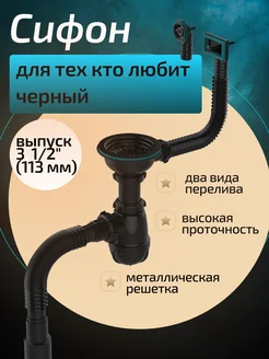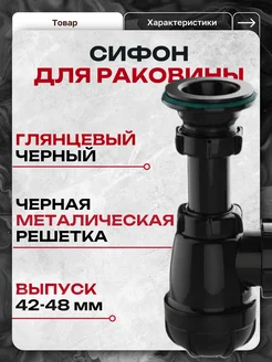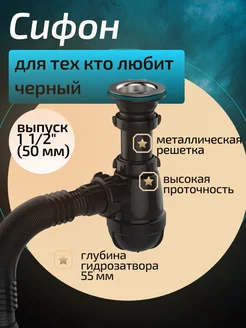 Сифон для раковин и моек черный с сливным отверстием 50 мм