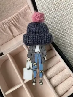 Зимняя женская оригинальная брошь "Девчата в шапочках"