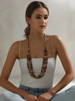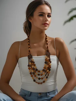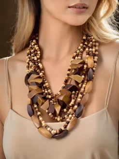 Бусы деревянные многослойные бохо