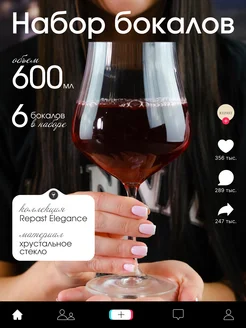 Бокалы для вина и коктейлей Elegance 600 мл 6 шт