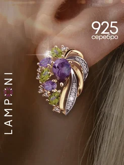Ювелирные серьги серебро 925 золото 585 аметист хризолит