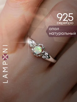 Кольцо ювелирное цветок серебро 925 с большим камнем опал