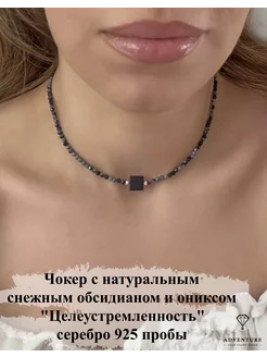 Чокер "Целеустремленность" из снежного обсидиана и оникса