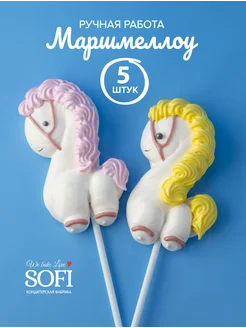 Новогоднее маршмеллоу на палочке Лошадки 5 штук по 20 гр