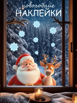 Новогодние наклейки на окна 2026 Дед мороз и Олень