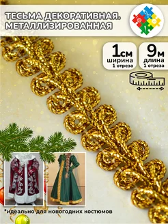 Тесьма новогодняя для рукоделия декоративная золото 9 м