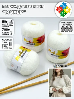 Мохер пряжа для вязания 50 г 700 метров 3 мотка белая