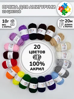 Пряжа для вязания спицами амигуруми 200 г. Набор пряжи 20 цв
