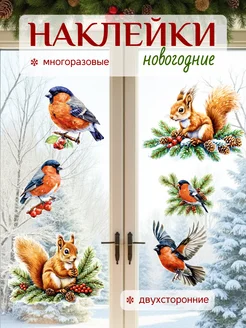 Наклейки на окна двухсторонние многоразовые новогодние 2026
