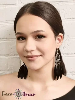 Серьги бижутерия длинные крупные висячие женские с перьями